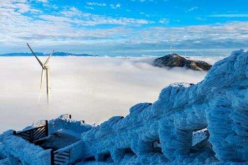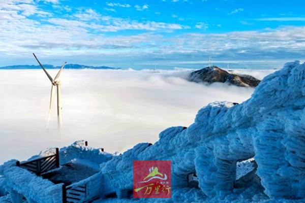 云冰山因地理位置特殊,冷暖空气在处交汇碰撞,每年冬季“雾凇、雪凇、雪景、云海”奇观轮番上阵,持续时间多达一个月左右,素有 “云海秘境、南方雪乡 ”的美誉。