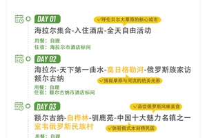1、到呼伦贝尔的往返大交通自理,提早订机票会便宜很多