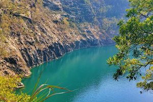 六片山上的天池,水深几十米,池水呈现令人惊艳的蓝绿色,像是镶嵌在大自然中的一块翡翠,形状真的像一滴眼泪,