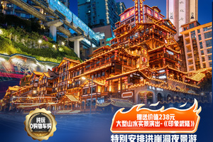赠送观看大型山水实景演出—【印象▪武隆】(演出时间不低于70分钟)艺术和自然于天地之间,100多位特色演员现场真人真情献唱,聆听川江号子的荡气回肠,感受纤夫之爱,即使千百年的记忆远了,但现代文明与传统文化却相融了。