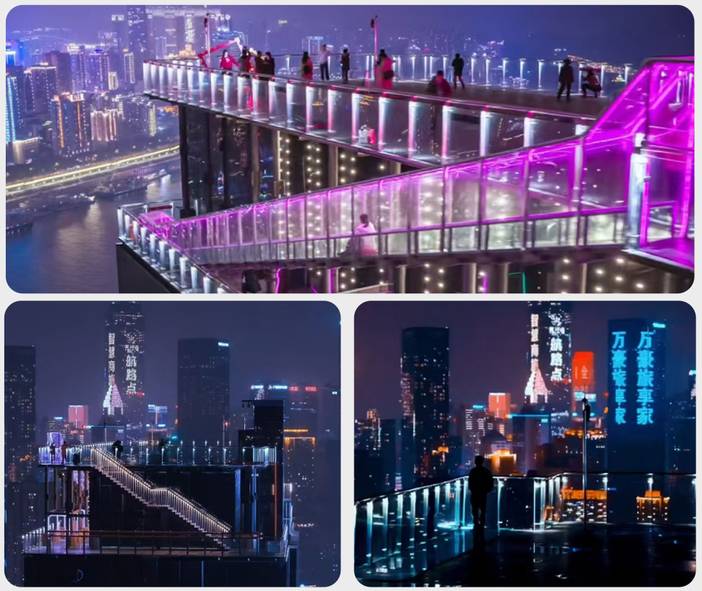 游览【城上天幕·乐游观光塔】 在这里,您不仅可以观赏到重庆壮丽的城市天际线,将长江两岸的美景尽收眼底,领略到“重庆外滩”独有的浪漫与优雅,感受到山城、江城、不夜城的独特魅力,还可以打破常规,体验心跳加速的感觉。