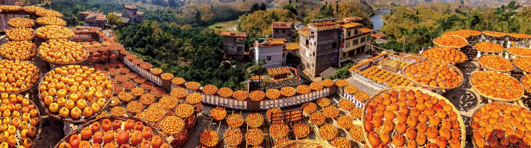 10:30到达 “中国最美瑶乡”美誉的恭城瑶族自治县,魅力恭城的中国月柿之乡——【恭城红岩新村】,一路可以欣赏到红红火火的柿子像灯笼一样挂满枝头,点缀漫山遍野,宛如红色的海洋,构成了一幅幅美丽的山水画!(注:如果红岩村没有柿子了,改去恭城其他园区柿子园)