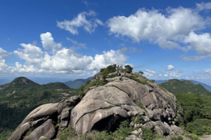 最奇特的景观就是山顶的巨型大岩石,酷似老虎头而得名,静卧在在天地之间,威风凛凛,不怒自威,汲取日月精华,俗话说摸摸老虎头,万事不用愁,好意头!吸引众多登山爱好者前来打卡,因为毗邻五指山,可以组合线路《五虎连穿》或者是三虎天地线,