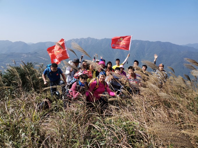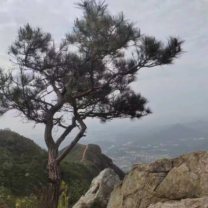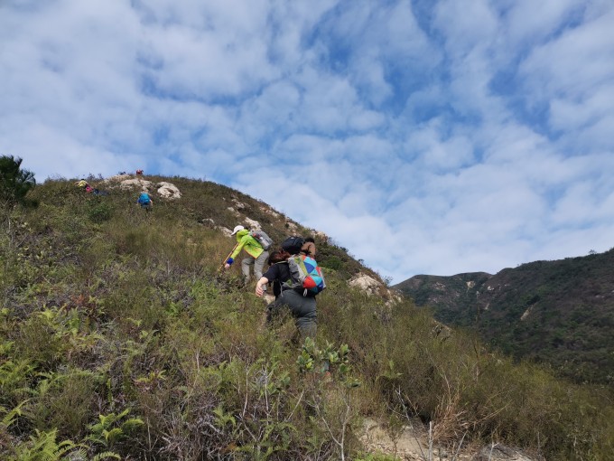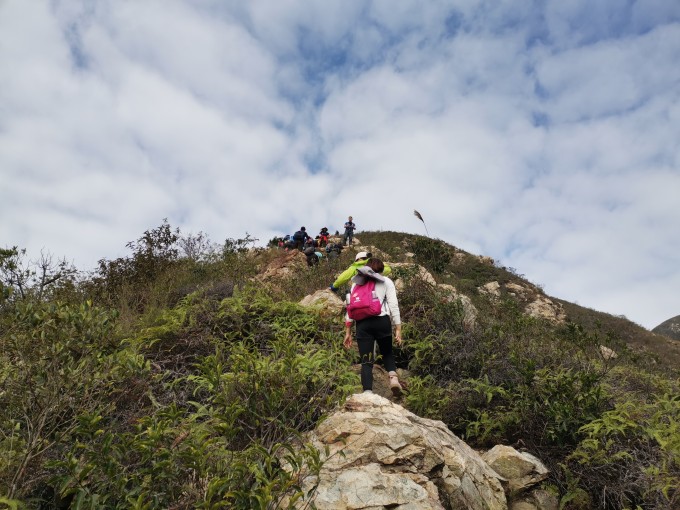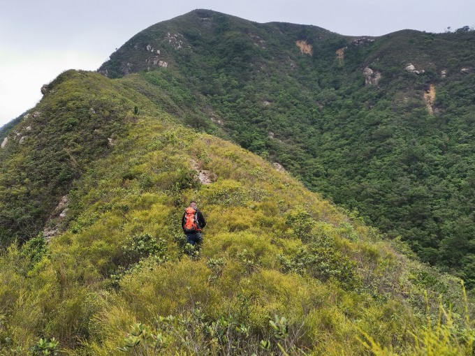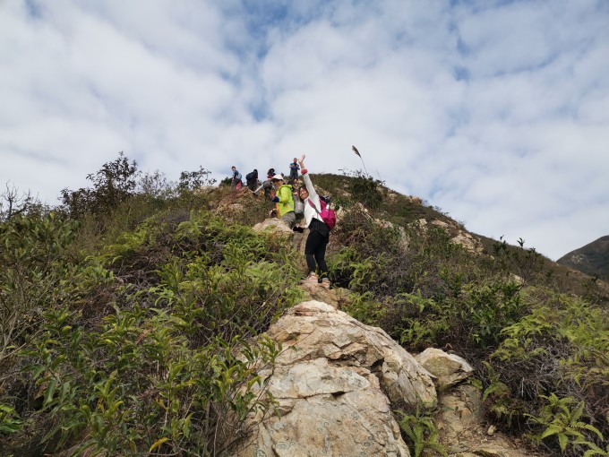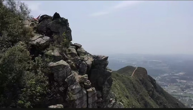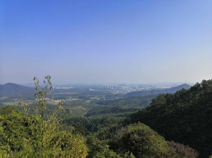 10:20 开始徒步登山,沿山脊线直登山头,还可以看到鹤山全景