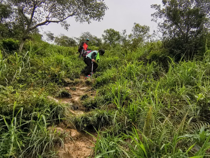 由于沿路长的都是草,没什么树木或藤条可供抓住缓冲,且坡度非常陡峭,下山时需特别小心。