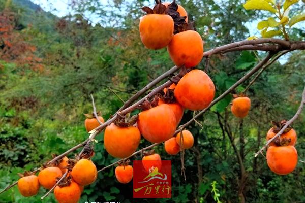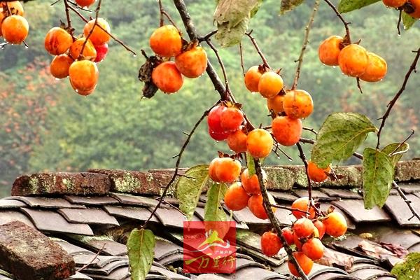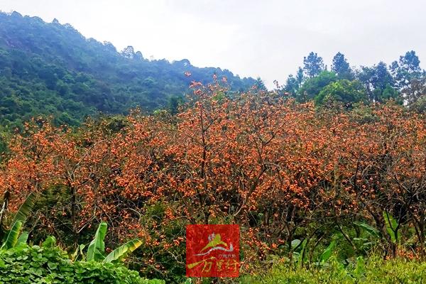 山脚数量众多的柿子树上,满树的柿子颇为壮观。