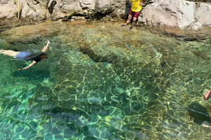 15:00 溯溪戏水,众多的水潭、怪石,珍珠水叠群,独特的自然风光。涉溪探险、觅玉寻金,溯流而上途经多处天然山水乐园、瀑布群。游泳的小伙伴记得带上泳具,紫云谷游泳溯溪最完美(还有儿童水上乐园,成人露天游泳池且免费,尽情戏耍);