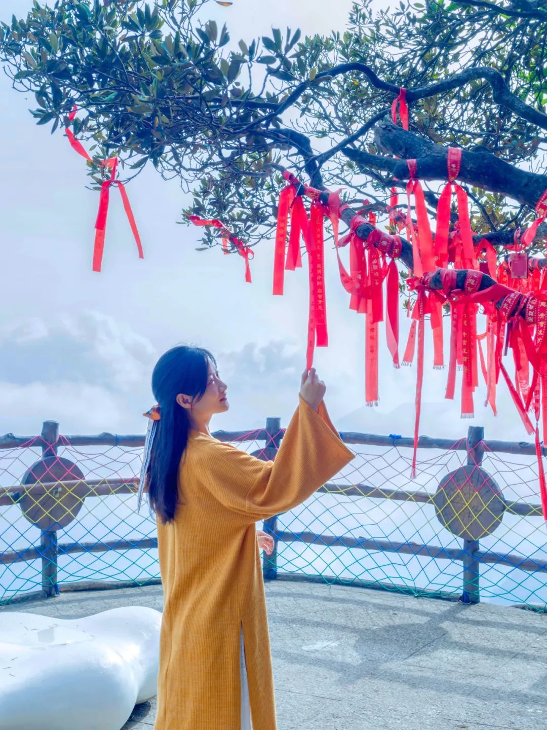 在莽山山巅挂个许愿带,向神明祈福