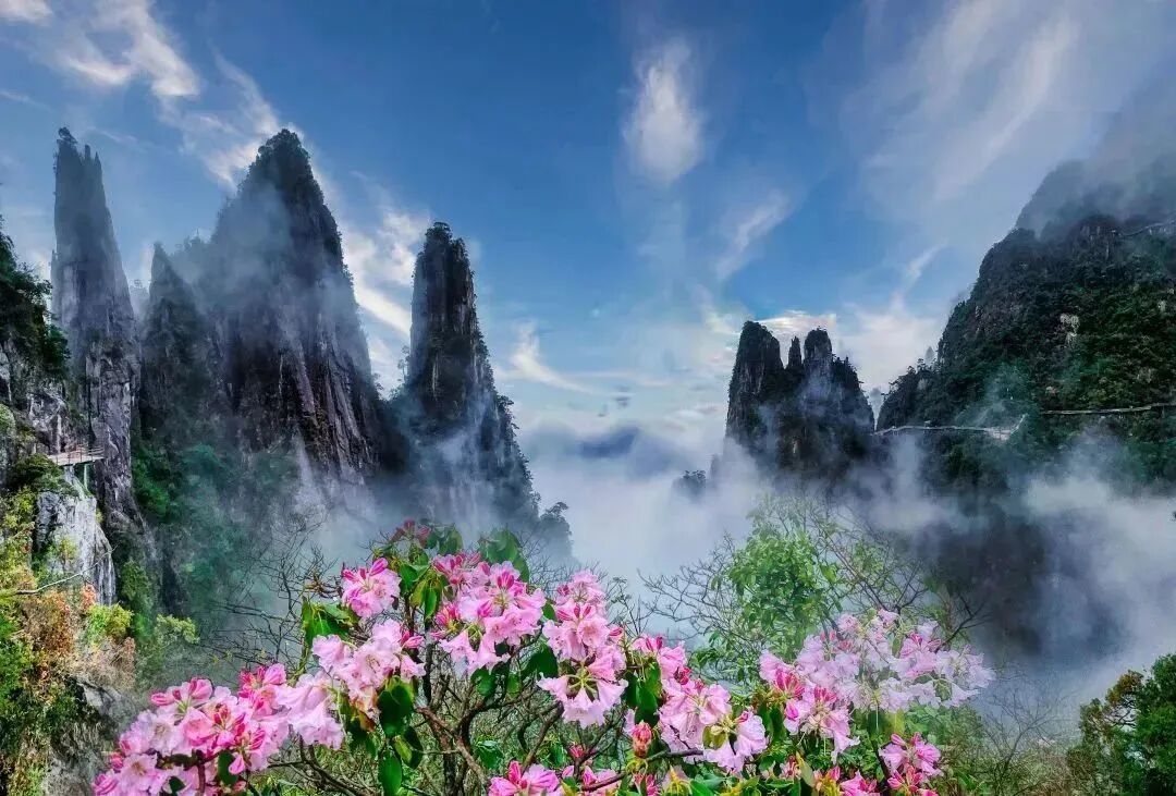 09:30 深度游览五指峰景区,漫步悬空栈道,南中国最长的悬空栈道;