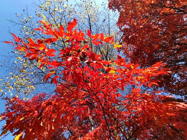 抬眼望去,层层叠叠的枫叶红得浓烈