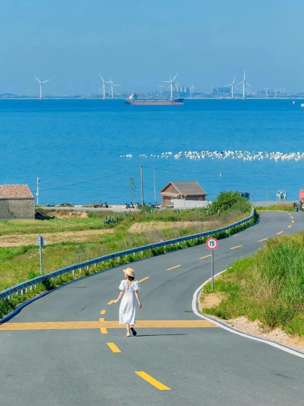 沿海环岛路:平潭环岛公路总长约200公里,其中的“君山后环线”被誉为平潭最美环岛路线。骑着小电驴飞驰在这条公路上,碧海、沙滩、风车、渔船、石厝、绿林一览无余,满满的小镰仓既视感,在斑马路上拍照YYDS!