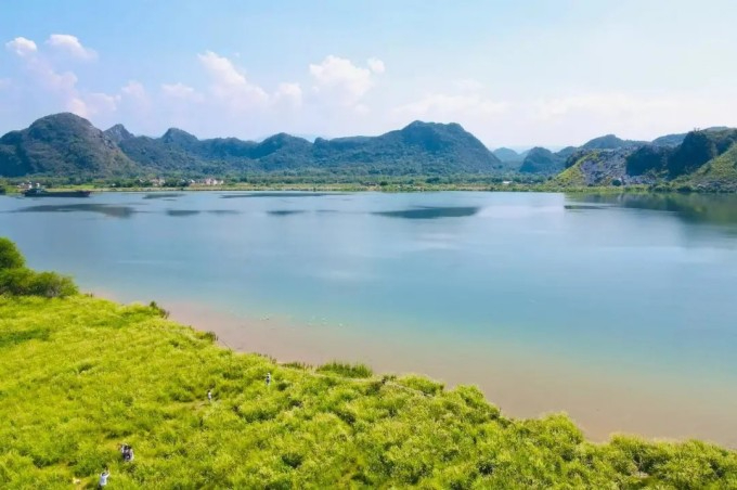 10:00 到达同心岛情人桥,跟着领队一起,沿着情人桥走进一片神秘的世界,湖水清澈如镜,四周碧草如茵,来个两公里休闲徒步拍照,大口吸氧;
