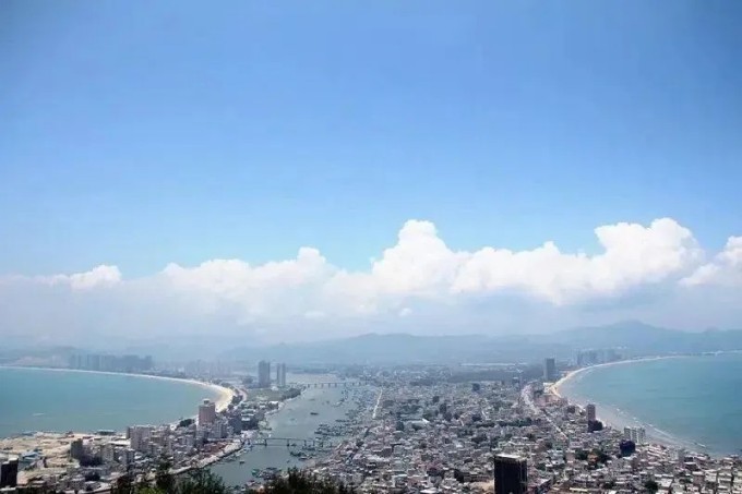 惠东双月湾因形状鸟瞰像两轮新月,故名。双月湾共分两湾,由大亚湾和红海湾相邻的两个半月形组成,由于风向原因,形成了左湾水色不清、右湾水清见底的景色。
