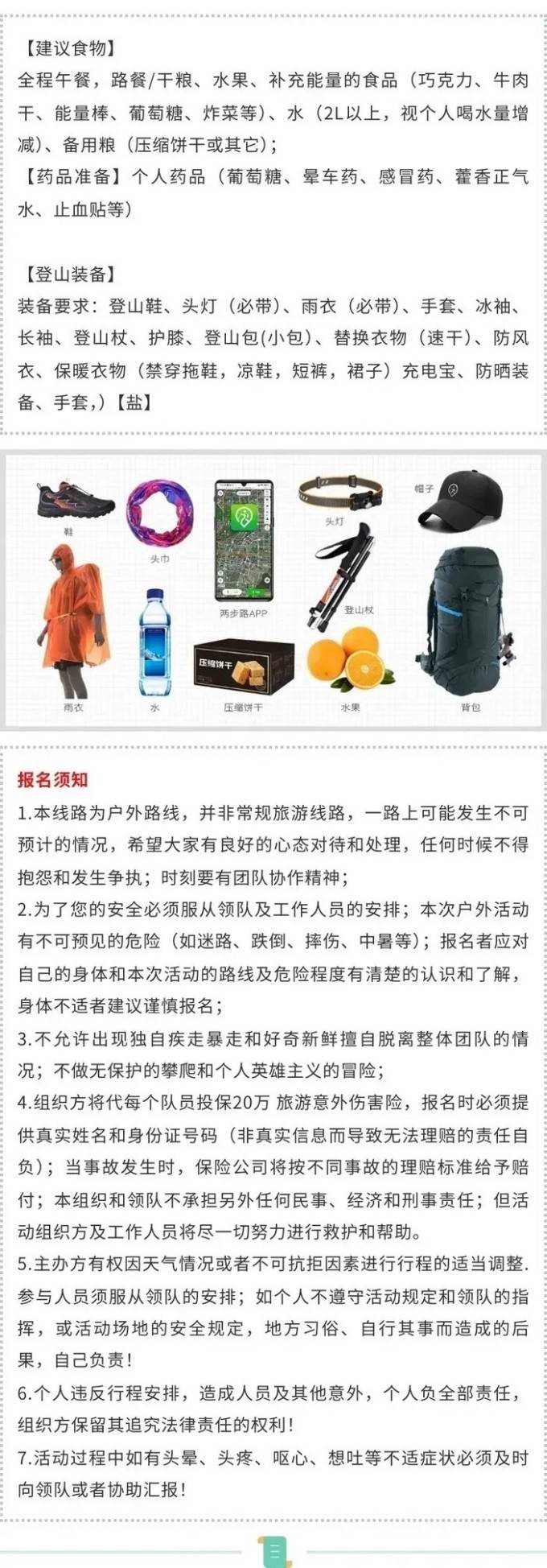 9、领队有权根据实际情况对行程做适当调整,以保证活动顺利进行,户外活动小雨/中雨都会如期进行,报名请知悉。