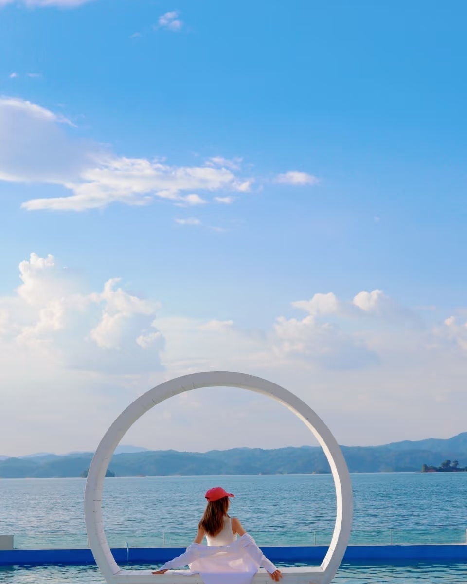 万绿湖镜花缘悬浮岛的天空之境,海天一色,拍照最佳打卡点,特别出片~