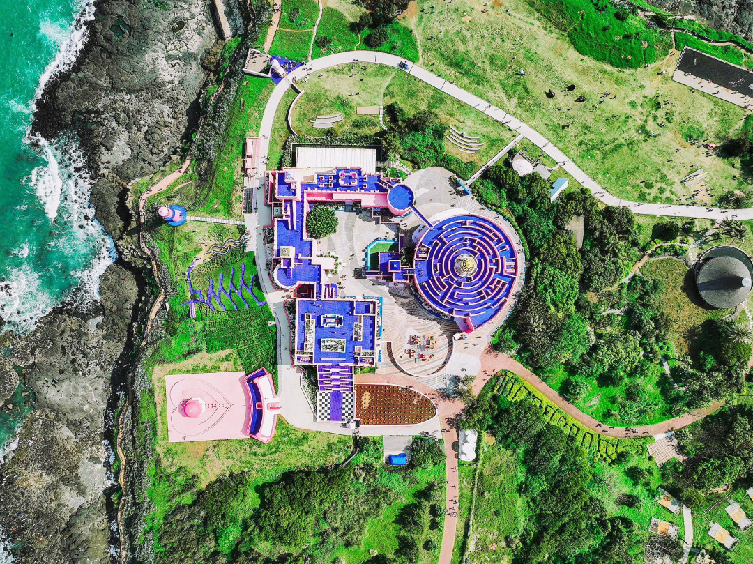 火山岛自然生态风景区是中国唯一的滨海火山地质地貌风景旅游区。 由数万根玄武岩节理构成的心形平台“海誓山盟台”随着潮水的涨落而若隐若现,形成一半是海水一半是火焰的奇景,这里还有很多网红打卡点:摩洛哥风格的粉红建筑“火山岛地学博物馆”,热气球、海上秋千和染着小清新色彩的巴士。