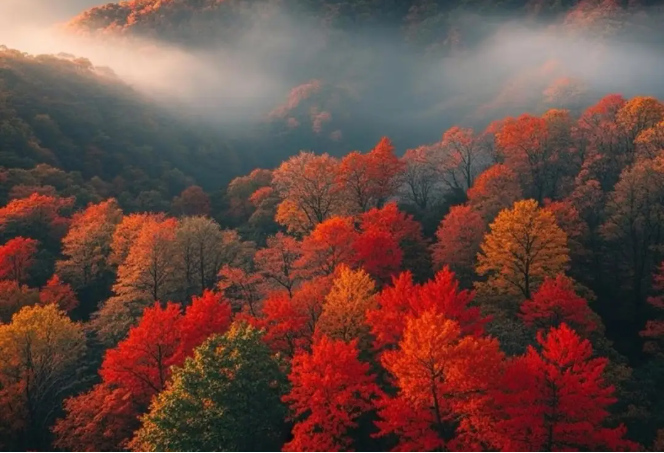 ○ 面积大,气势壮观景区有830平方公里,其中就有680平方公里的红叶景观。