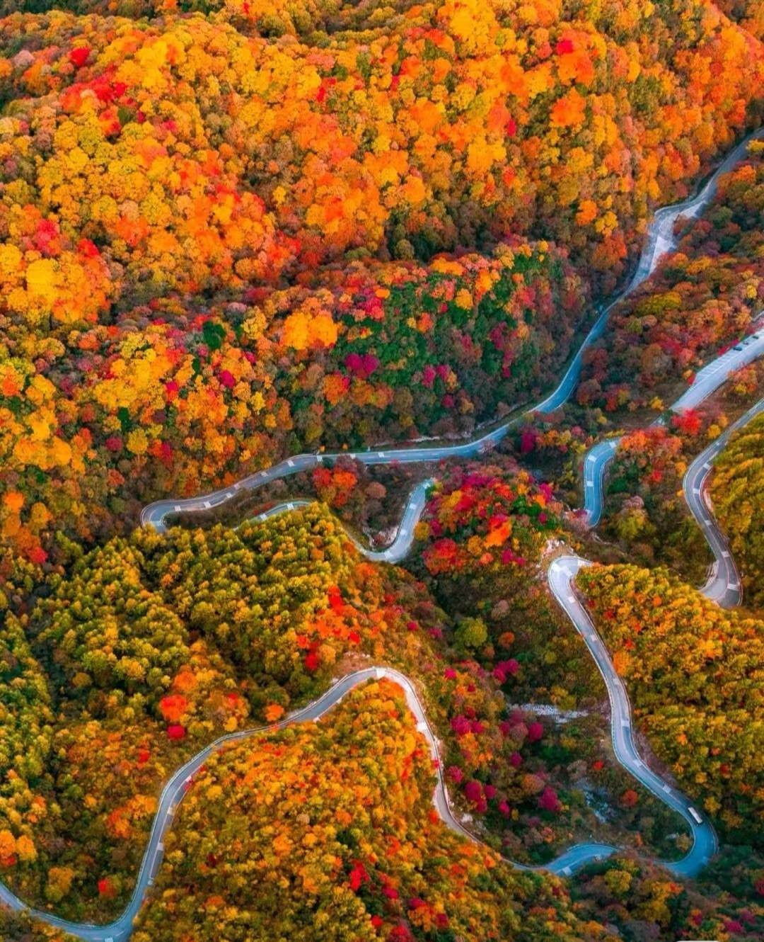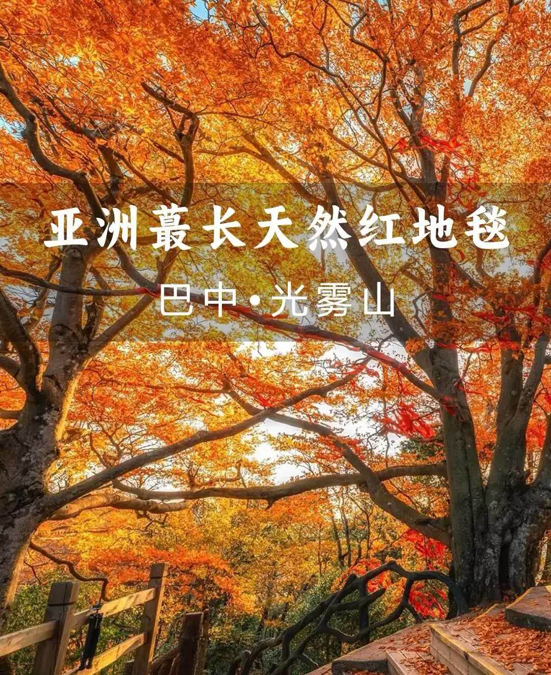 一山一色,一步一景漫山遍野落满地给大地盖上”红盖头“被号称“亚洲最长天然红地毯”是光雾山赏红叶的最佳地点之一。