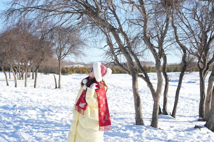 随着夕阳西下,我们驱车来到【鹰窝沟】看日落,这里有雪丘之上的排排白桦林,在阳光照射下白桦树干与白雪争辉,长长的树影拖在雪丘之下层次分明,温柔铺展一幅绝美画卷。