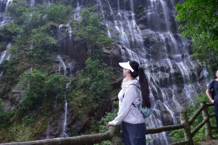 徒步见证成千上万株三角梅如瀑布般倾泻的壮丽景象。绝对是拍照打卡的绝佳背景板。我们的起沿着马岭湖畔的栈道漫步,看水光山色与繁花相映成趣。