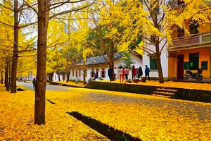 金秋的银杏是一种光彩夺目的美,是激漾心灵的美
