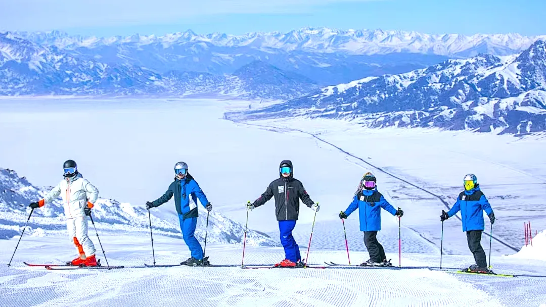 早餐后出发沿连霍高速前往赛里木湖。冬季的赛里木湖,湖面冰封,在阳光照射下呈现出梦幻的蓝冰质感,仿佛一块镶嵌在雪山间的巨大蓝宝石。抵达后,先前往赛里木湖国际滑雪度假区(雪票费用自理),这里是亚洲海拔最高的滑雪场(3500米+),滑雪道依雪山而建,滑行时可将整片赛湖全景纳入视野,体验 “在云端滑雪” 的极致感受。滑雪结束后,我们将沿湖游览,当夕阳缓缓落下,将天空染成橙红与金黄,湖面的蓝冰也随之变色,大家围坐在一起,享用一顿热气腾腾的高山火锅,搭配新疆特色歌舞,在冰雪中点燃热情。用餐结束后,前往景区附近酒店入住。