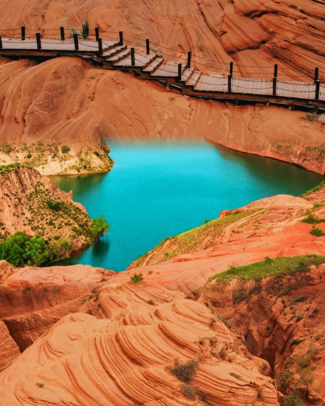 看到红色石头像泥石流一样呈现出一种流水状,一圈圈、一坨坨、一弯弯的向沟壑中涌去,火星遗落的秘境,在陕西的怀抱中,藏着一处未被尘世喧嚣触及的绝美之地——波浪谷,一个仿佛从火星穿越而来的秘境,正静静地等待着每一位旅者的脚步。