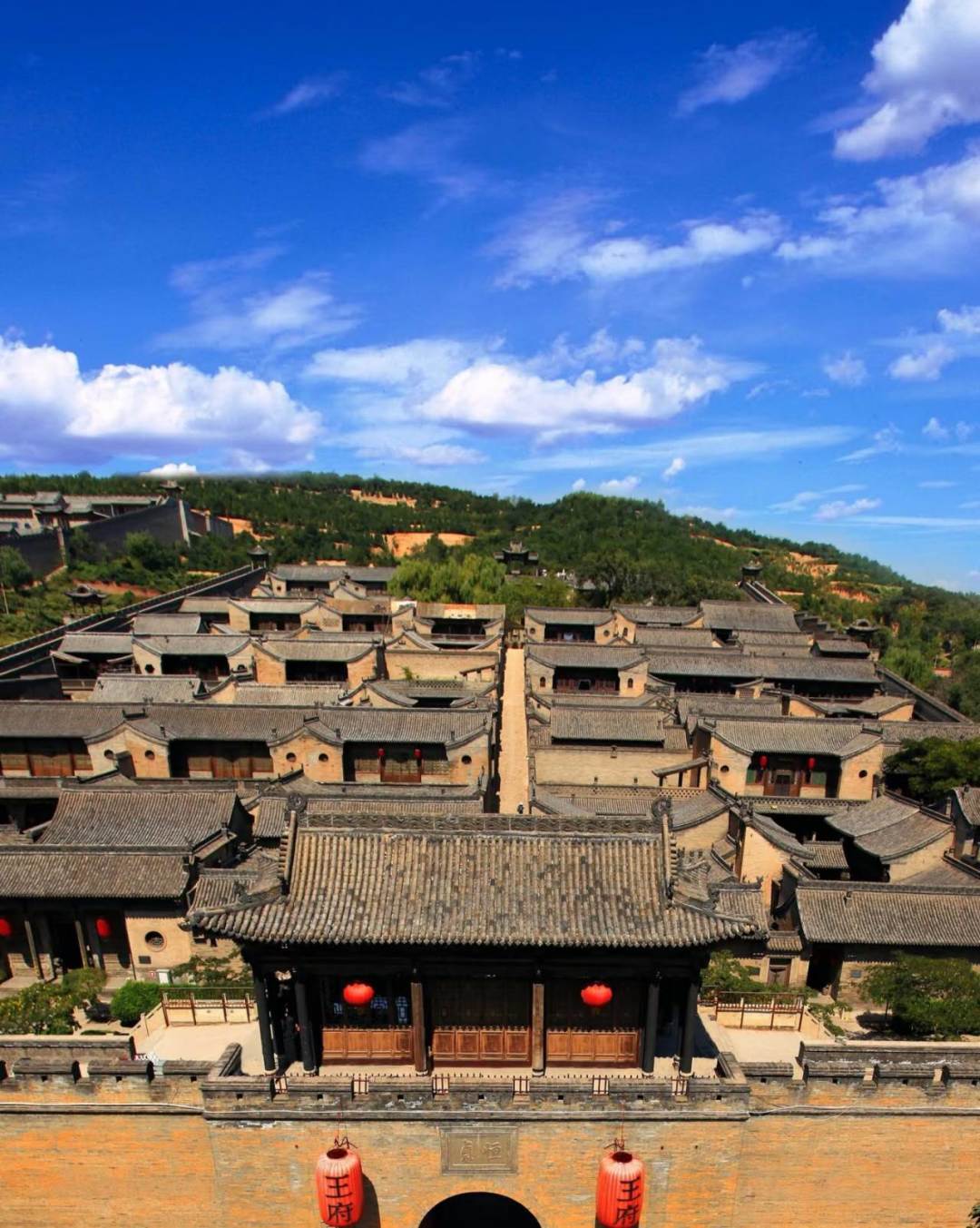家是一座院,院是一座城。那种跨越时空的历史沧桑感,那些商贾的繁华、家族的荣耀,在此刻仿佛都可以触摸到,被广誉为“华夏民居第一宅”“中国民间故宫”和“山西的紫禁城”的王家大院更像是一座城。从最高处看去能明显看出纵横的小路拼成了一个“王”字。