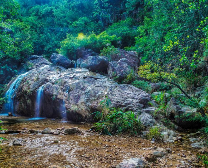 10:00 到达登山起点,跟随领队做热身运动后开始茶山之旅,从景区横穿而过,看山泉潺潺不息