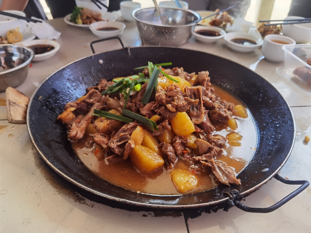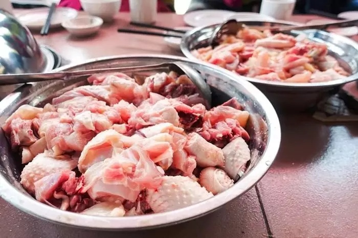 2、途径古村落AA柴火茶山鸡围餐,人均约45元(10人一围、一般是一鸡一鹅两个大锅,需要提前跟客服预定)