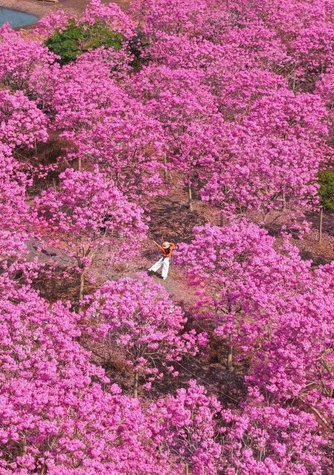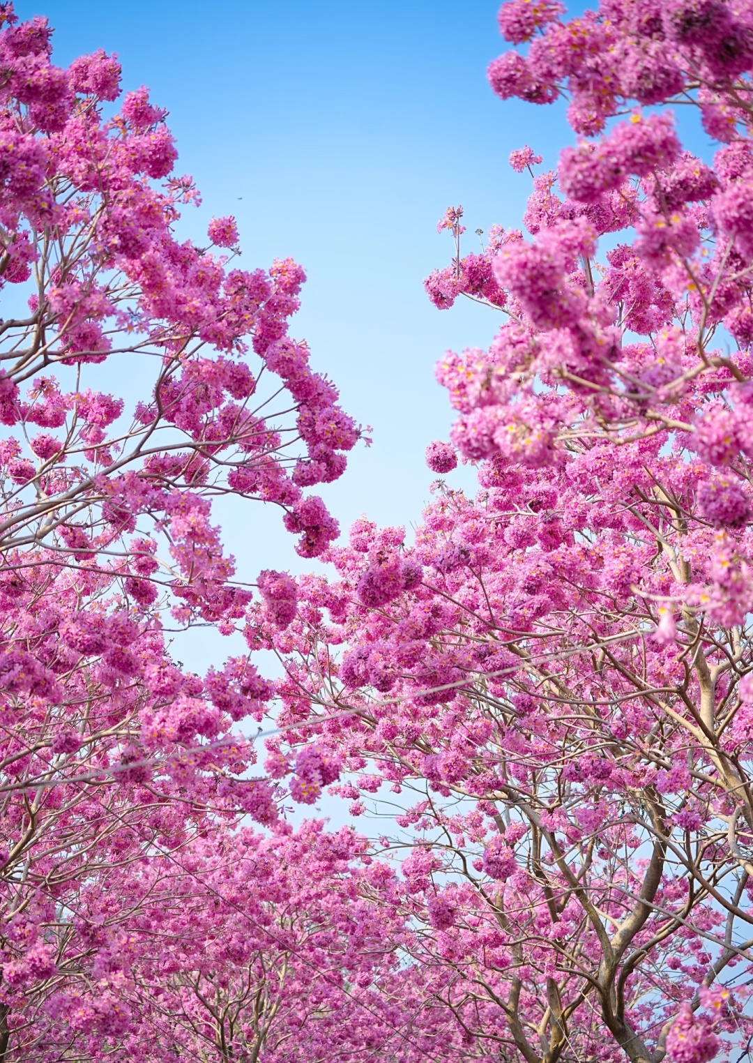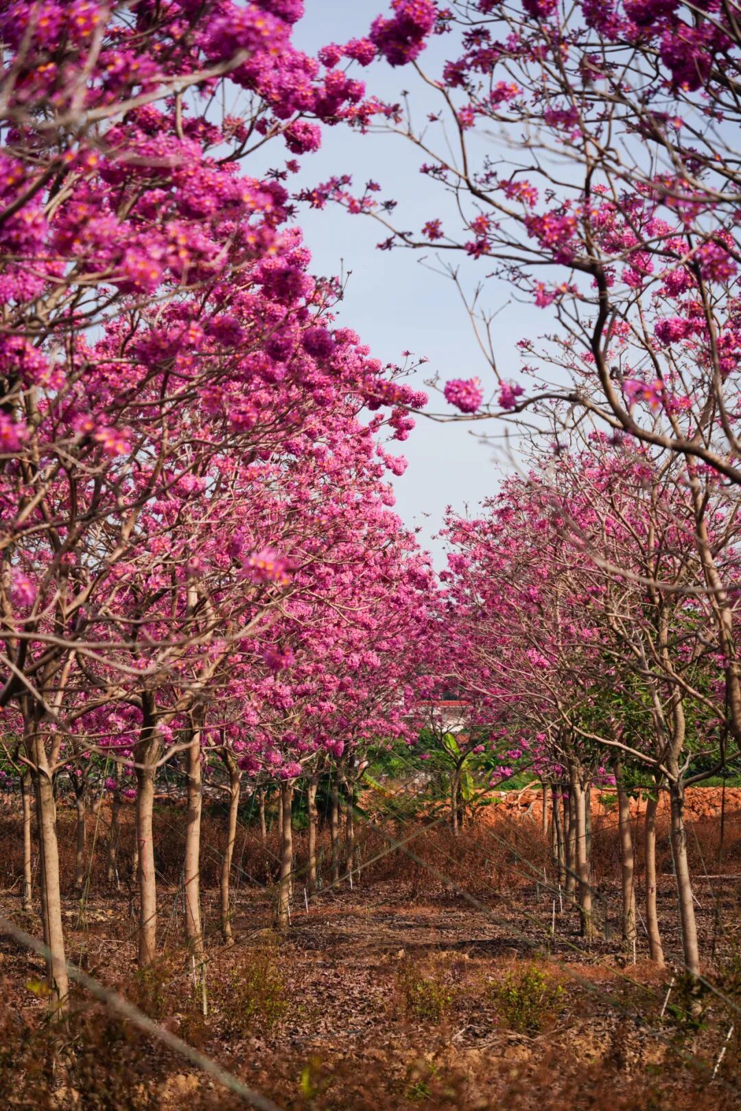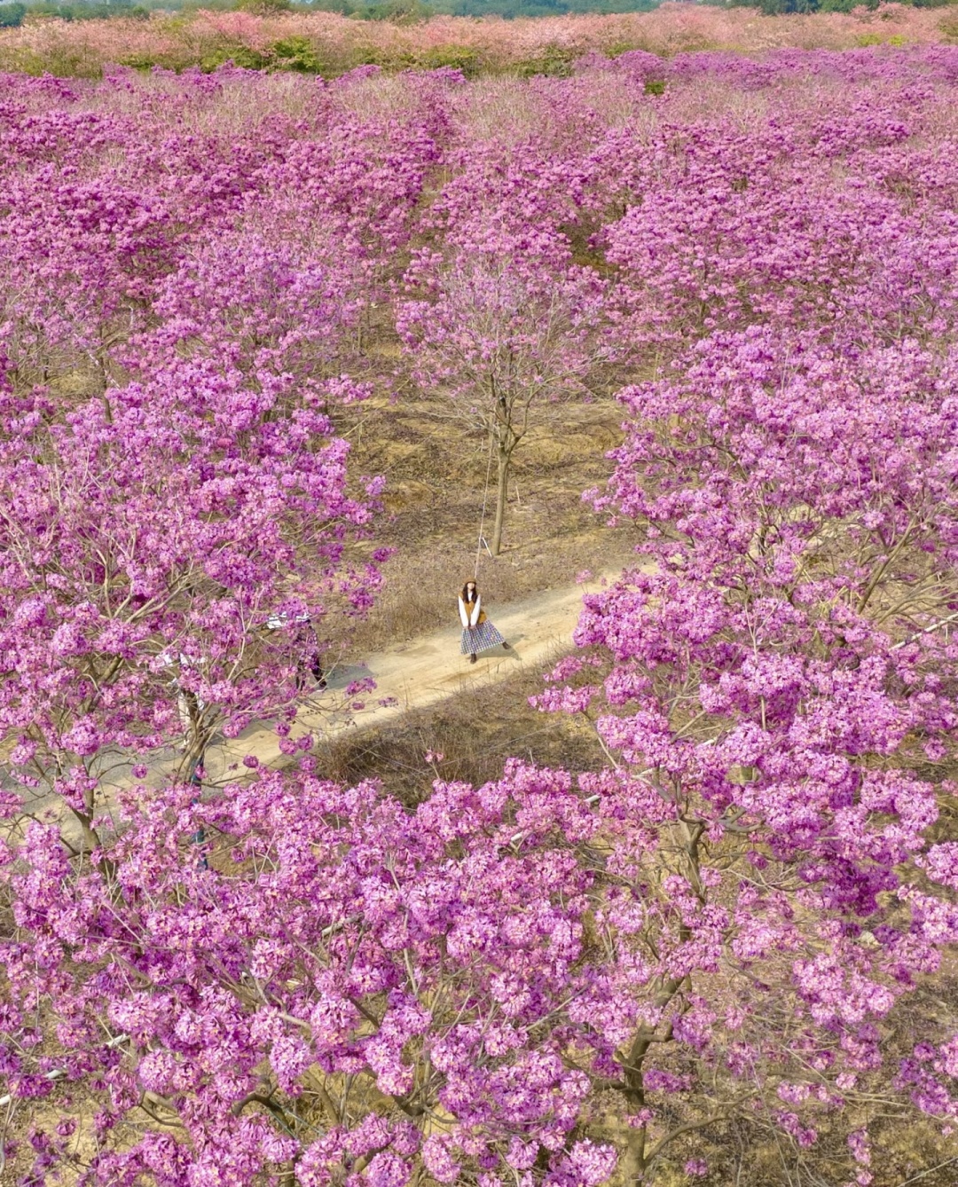 紫花风铃木的花期一般为12月至次年1月底,目前正值最佳观赏期。单株花期约一个月,整体观赏窗口较长,但花朵最美、最繁盛的阶段非常值得把握。