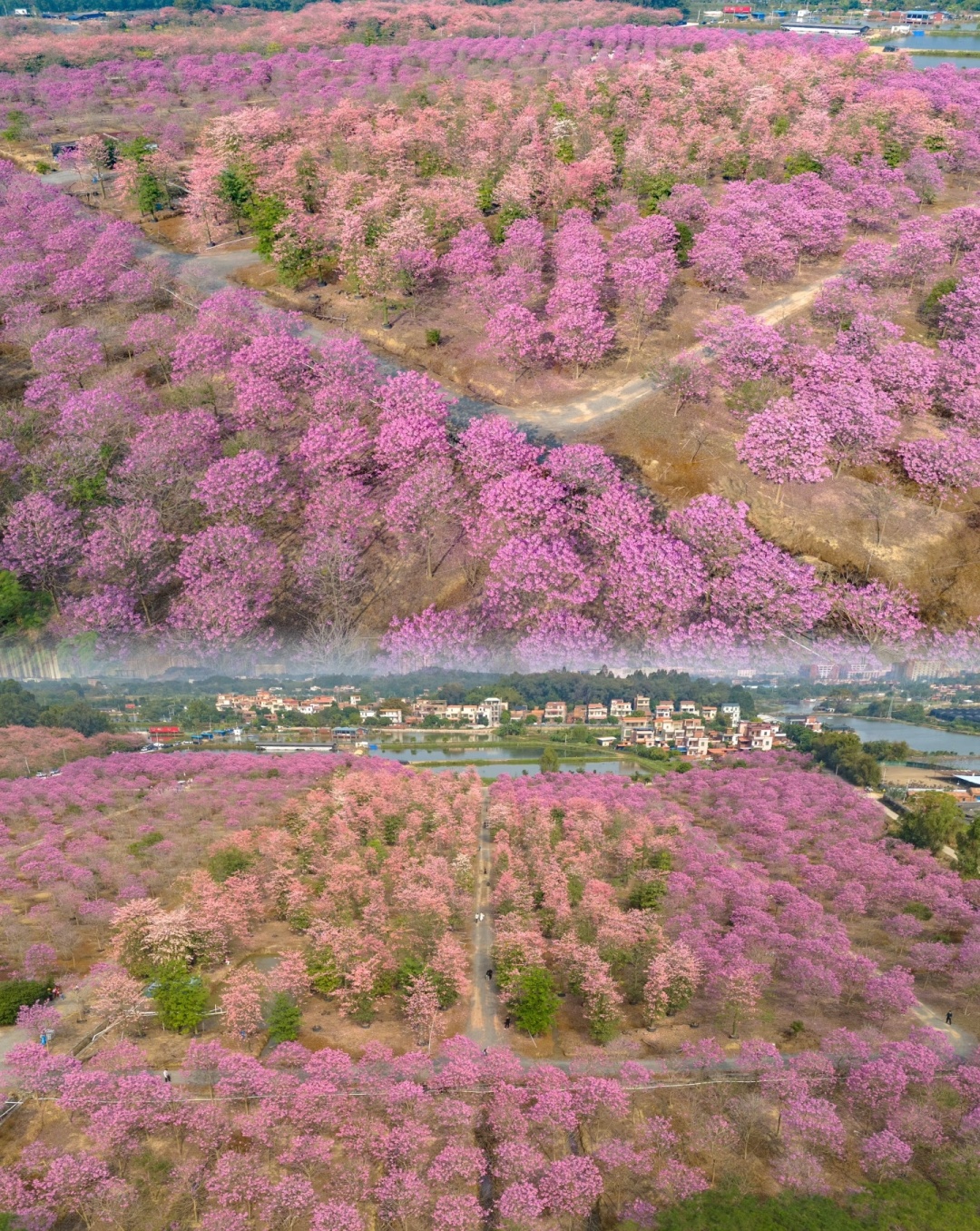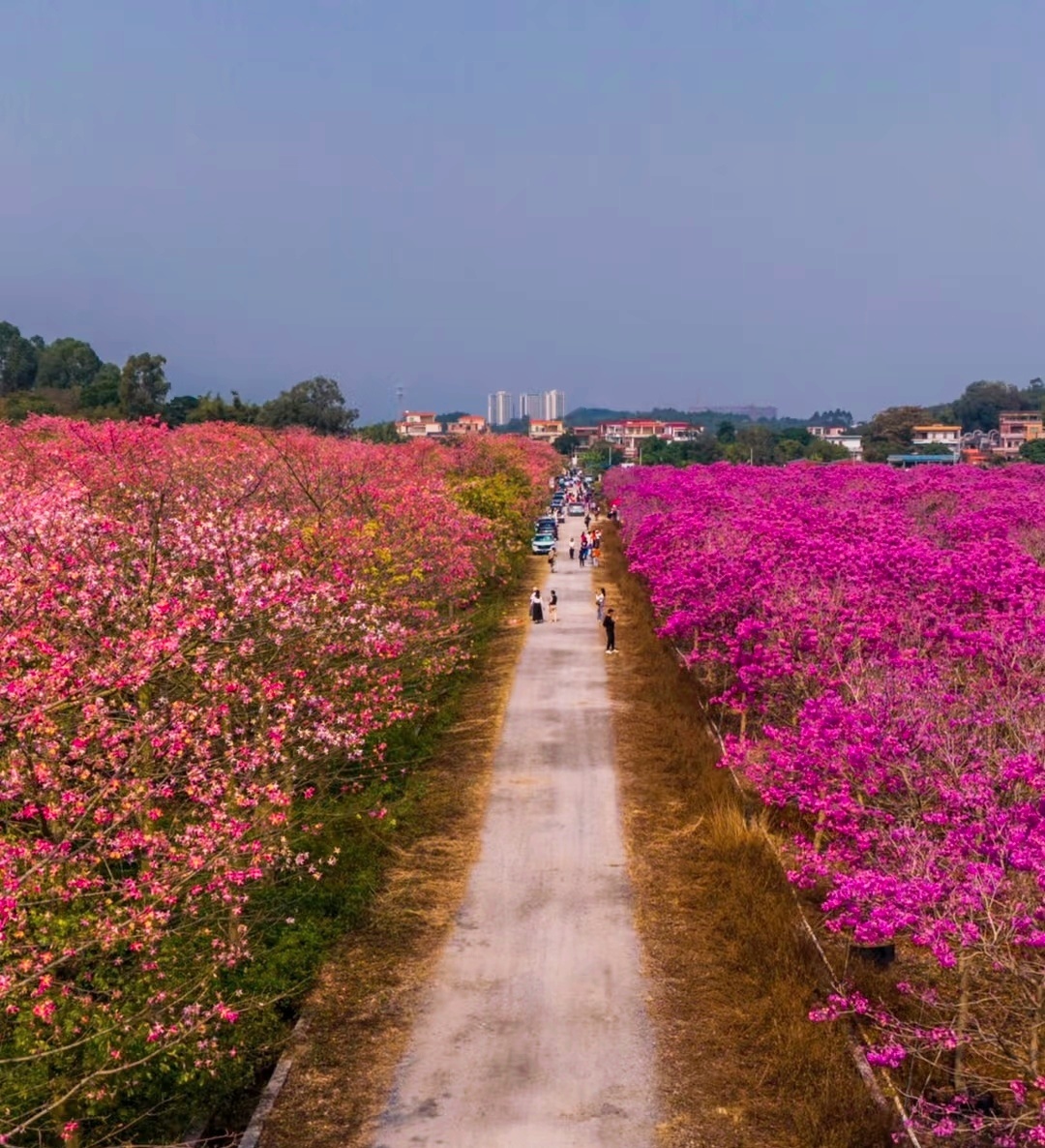 13:30 到达“三水紫花风铃”,跟随领队步行进入欣赏成片的紫花风铃与木棉花,不用门票,也能没到震撼。满树铃铛、姹紫千红的紫花风铃盛开,构成一幅美如童话的仙境,会让你深深的感到震撼!