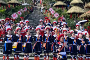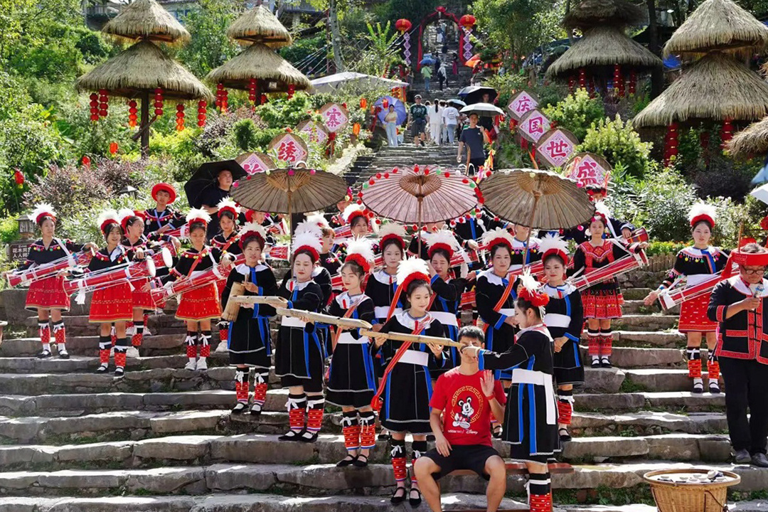 瑶族迎宾队身着盛装