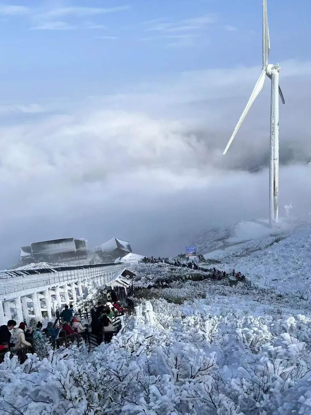 09:30 到达【云冰山】一脚跨两省,走进云冰山的云海/雾凇世界,登520级爱情阶梯,欣赏云上风车、千年苔藓