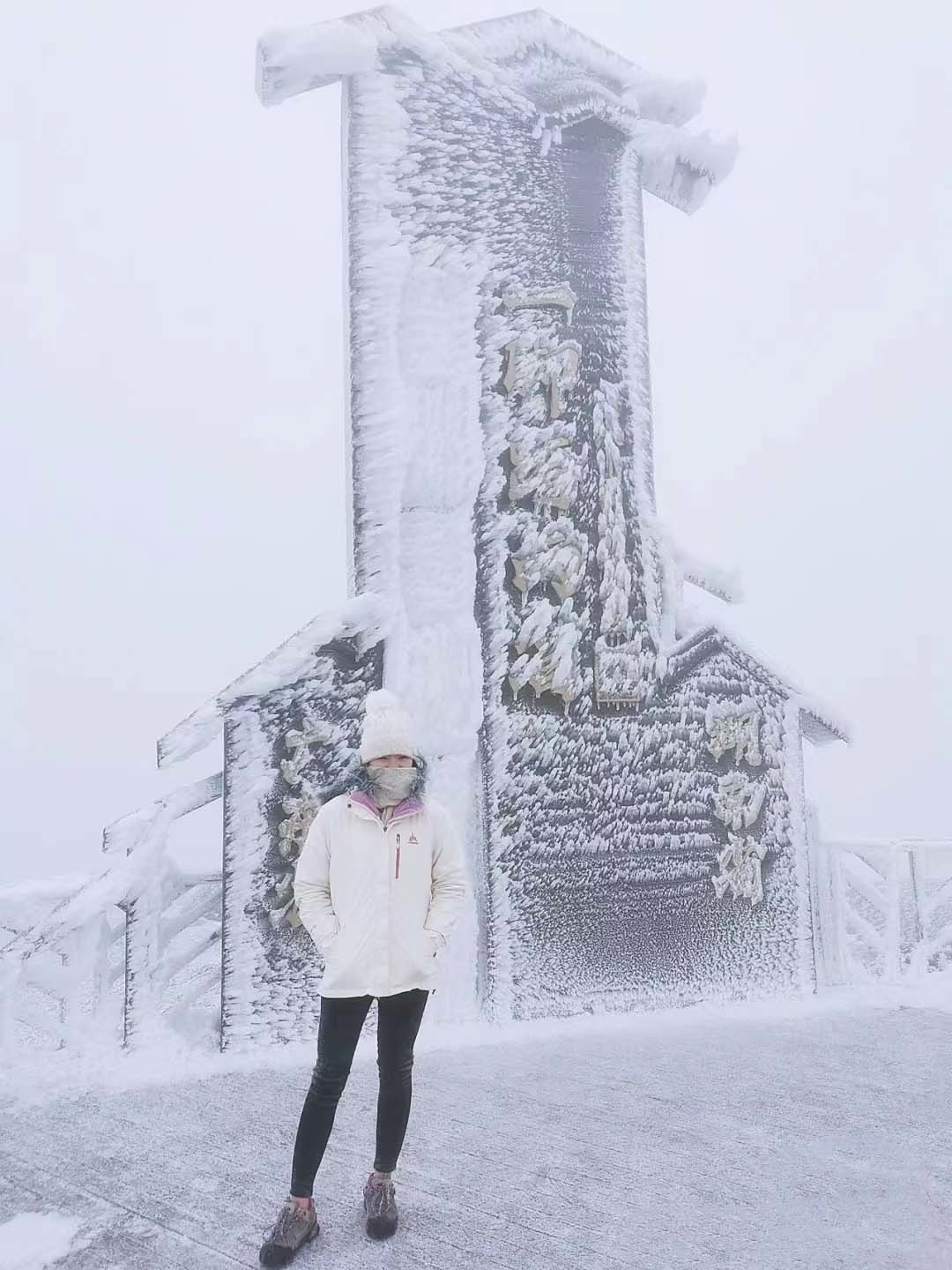 13:00 继续漫步在幔绕群峰的云上世界/银装素裹的冰雪世界,一脚踏两省,让人流连忘返