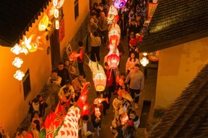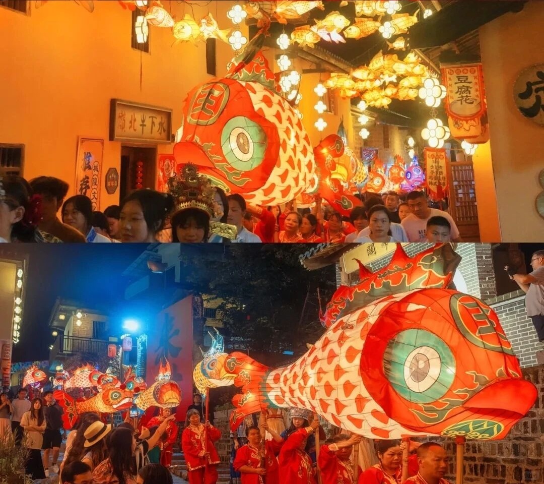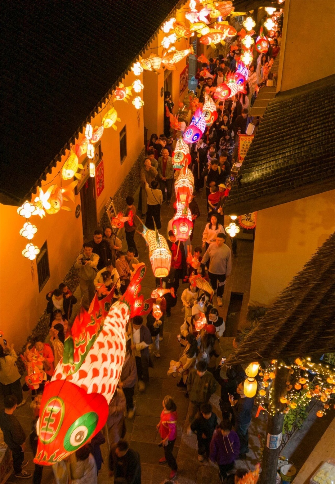 百人齐举鱼灯,瞬间点亮整个古城街巷