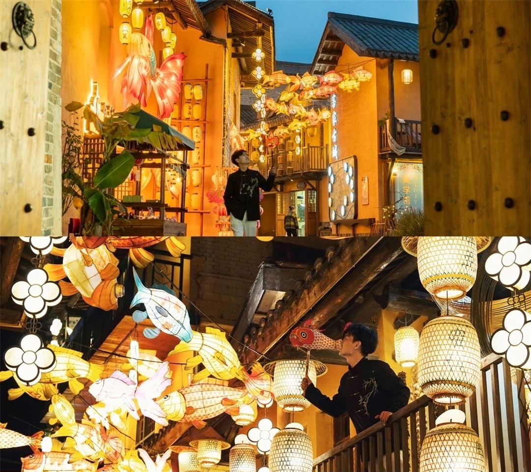 15:30 到达【定南客家古城】,这里是《开推3》的同款综艺场景。千年巷弄、青石秘径、漫画墙,还有随处可见的锦鲤鱼灯。这是一座以鱼灯为IP的古城。亲手制作一盏专属小鱼灯,或挑选心仪的成品鱼灯租下,带着它漫游古城各个角落,与它亲密合影