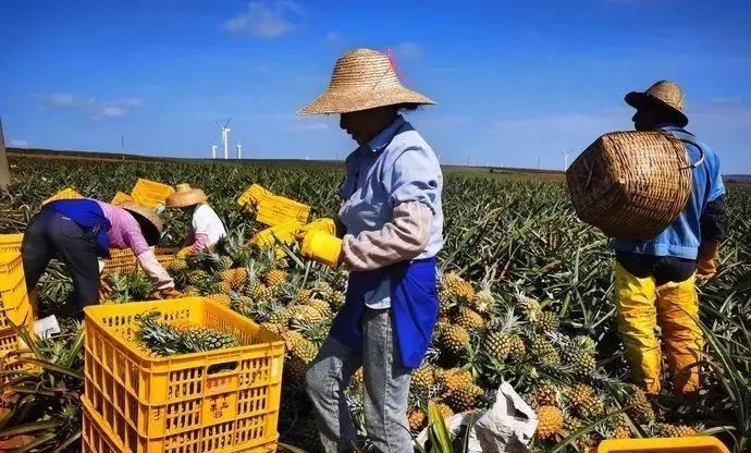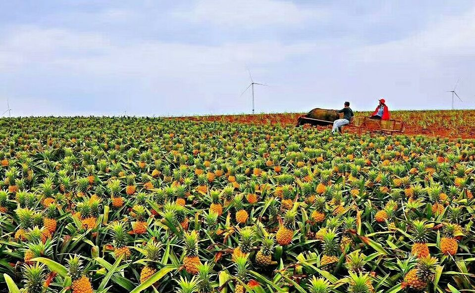 10:00 中国独有的著名田园景观【菠萝的海】远望去成片菠萝的海连绵起伏,一眼望不到边,一个个金黄色菠萝立在株苗上,就像绿色海洋上的金鳞鱼随风涌动,还不时飘来阵阵的香甜味。白色的风车耸立其中,这里被誉为中国的“普罗旺斯”、“北海道的花田”。在这还可以观赏到悠悠转动的风车群,再加上多彩的菠萝园让你体会到童话般的景致。而徐闻的地里位置恰好适合【风力发电】,田野的空旷场地也正适合风力发电车建设;也因如此,风车正好点缀了大片田野,令人彷佛有著置身在欧陆乡间的错觉。