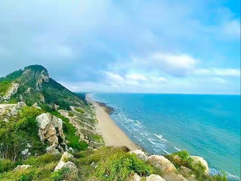 一条登山栈道在海滩与山脊间,形成靓丽的景色
