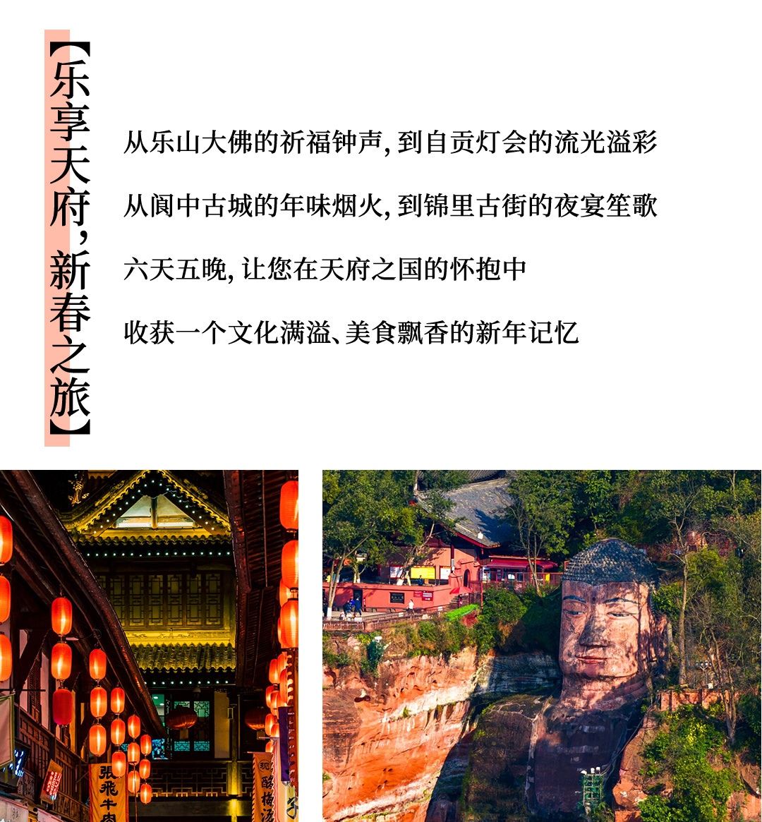 朝拜世界最高石刻佛像,祈求新年福运。傍晚转战张公桥,品尝跷脚牛肉、甜皮鸭等地道小吃,让味蕾在麻辣鲜香中舞动。春节限定的美食市集,带您深入乐山人的“年味厨房”。
