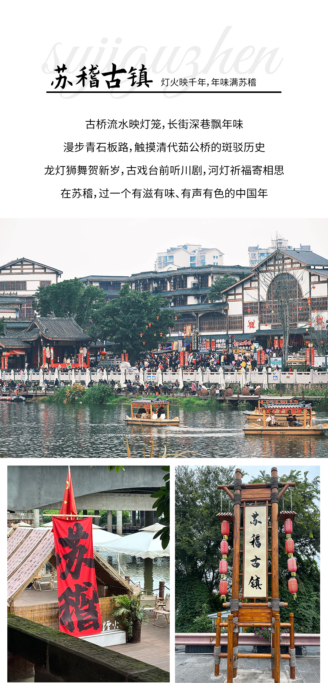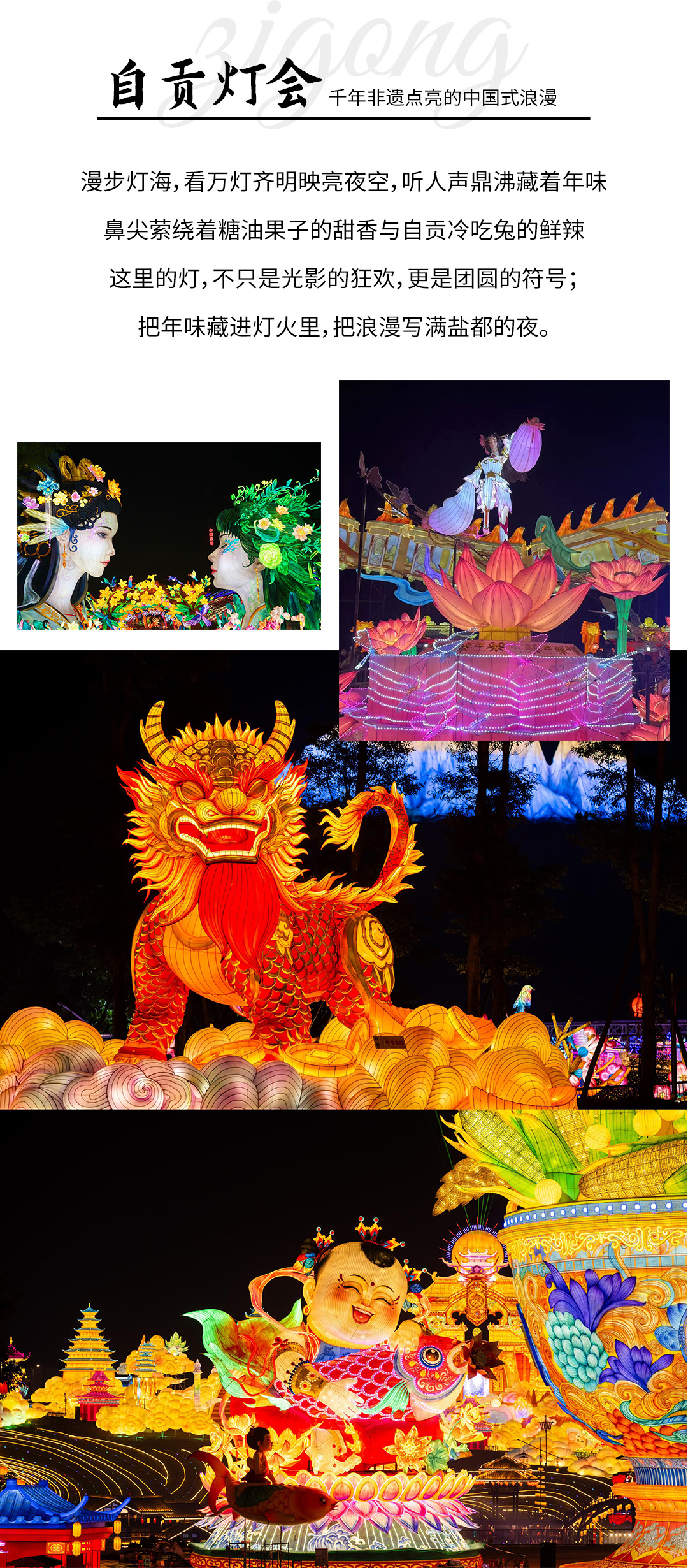 漫步苏稽古镇,青石板路诉说千年故事,春节民俗表演增添古韵。夜幕降临,自贡灯会点亮夜空,巨型彩灯如梦幻仙境。