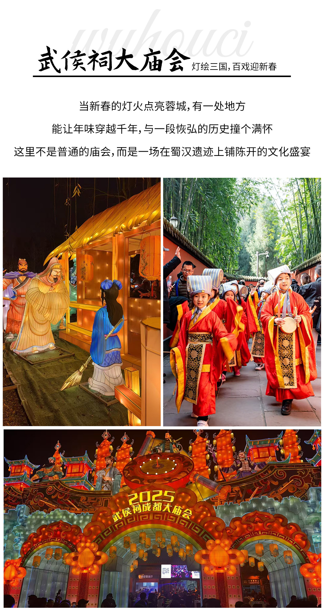 瞻仰诸葛亮塑像,在红墙竹影中触摸三国历史。武侯祠大庙会特供的小吃和热闹丰富了这个春节。当夜幕降临,古镇的千年石板路被暖红的灯笼依次点亮,黄龙溪用一场汇聚了十古风韵与非遗精粹的盛会,吸引了无数游客前来赴约,共同见证了这份传承千年的火热浪漫。