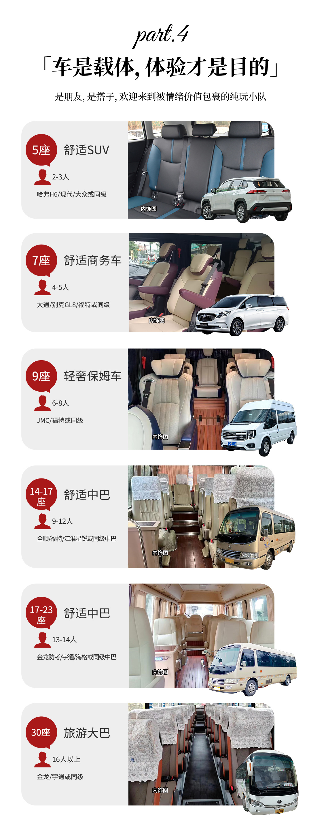 2、餐饮:正餐自理,大家可一起AA,也可以单独用餐,丰简由己,如有需要随车工作人员可提供推荐。