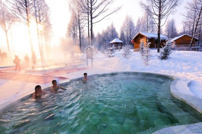 【二道白河温泉】赠送室内外寒地温泉体验。零下20多度,甚至会飘起雪花,但是只有泡室外温泉才过瘾,体验真正的冰火两重天。(不占床儿童不赠送)