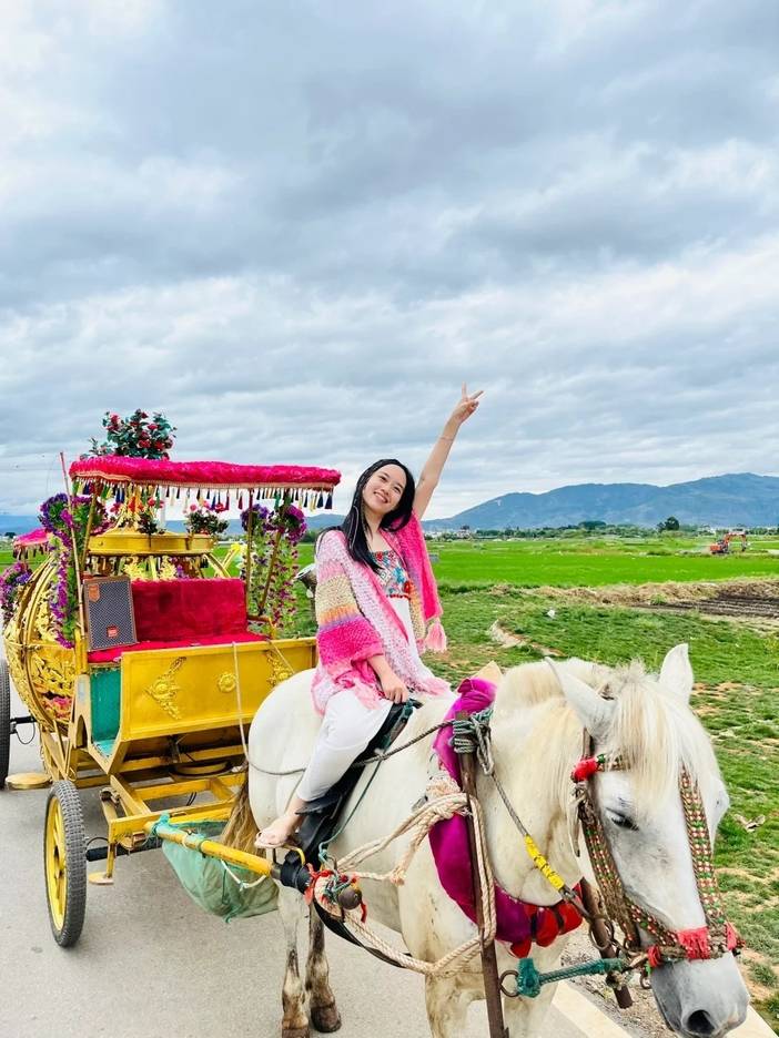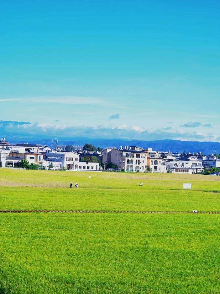 车轮滚动,带起微风,吹拂着脸庞,那是来自岁月的温柔抚摸。马车途径万亩稻田,一路田园风光,伴随着哒哒哒的马蹄声到达网红打卡地《我在洱海有块田》。