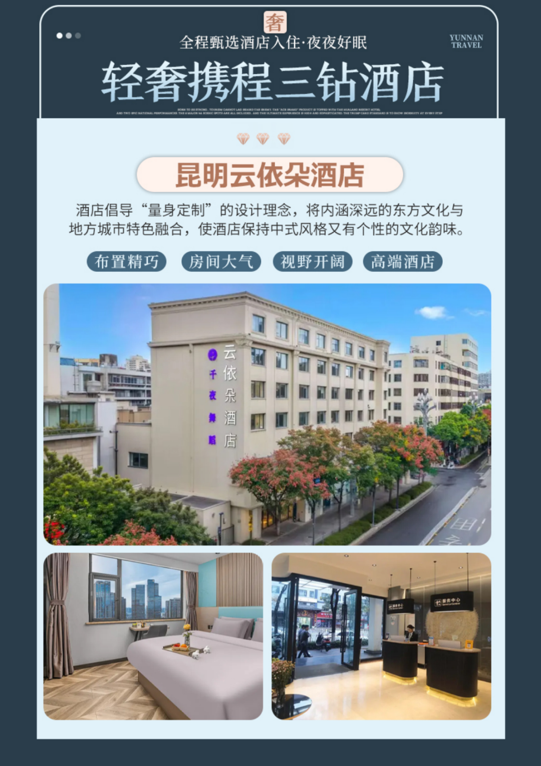 昆明参考酒店:云依朵酒店、艺龙海棠酒店,睿桥酒店 致远国际酒店 城市便捷酒店 众得酒店 御晟酒店 或者同级;
