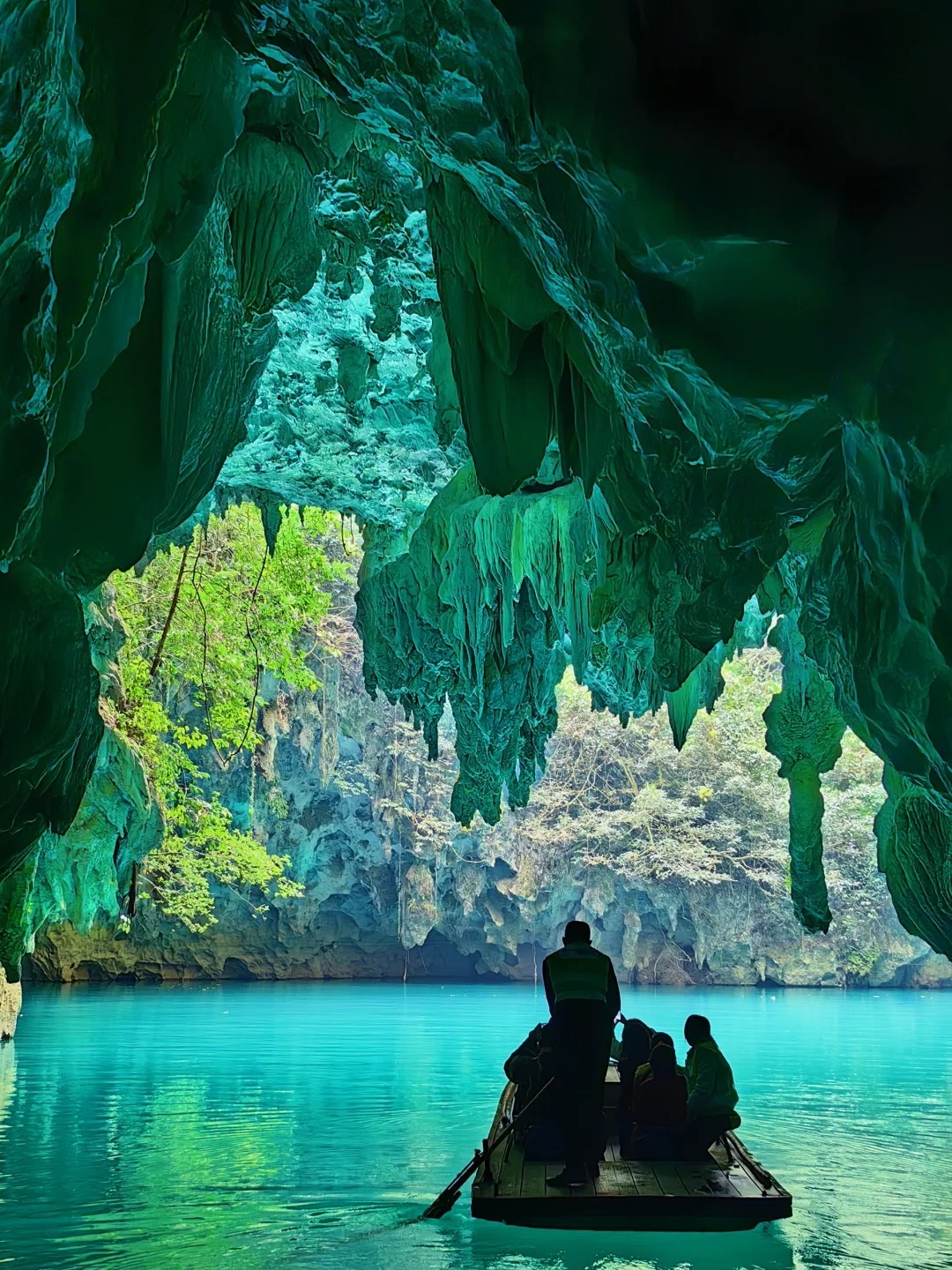 低头俯瞰,脚下是暗流涌动的地下河,清澈的河水倒映上方的钟乳石,虚实交错间更添几分神秘与幽邃。洞中恒温16℃左右,能让你在大自然的空调房中卸下一身暑气。