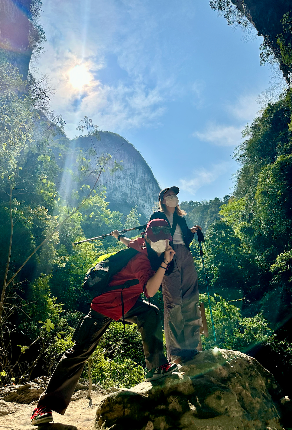 14:00 跟随领队徒步俯瞰三门海各大天窗,沿途经过几座天生桥,溶洞(不徒步的小伙伴可以在河边游玩)
