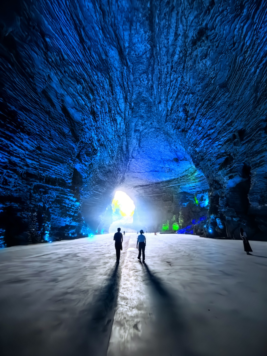 洞天盛境是国内罕见的总长约3公里的地下大峡谷,步入光怪陆离的洞天秘境,仿佛穿梭于时间与空间的裂缝之中。这里是明星同款打卡地,沿着曲折蜿蜒的栈道缓缓深入,演员王丽坤曾驻足的地方逐渐映入眼帘。