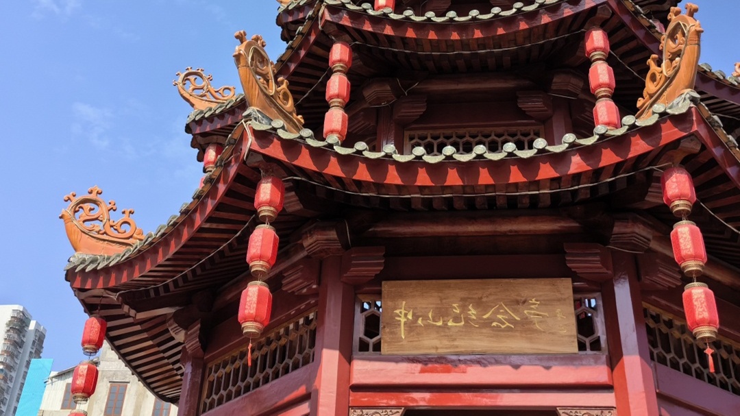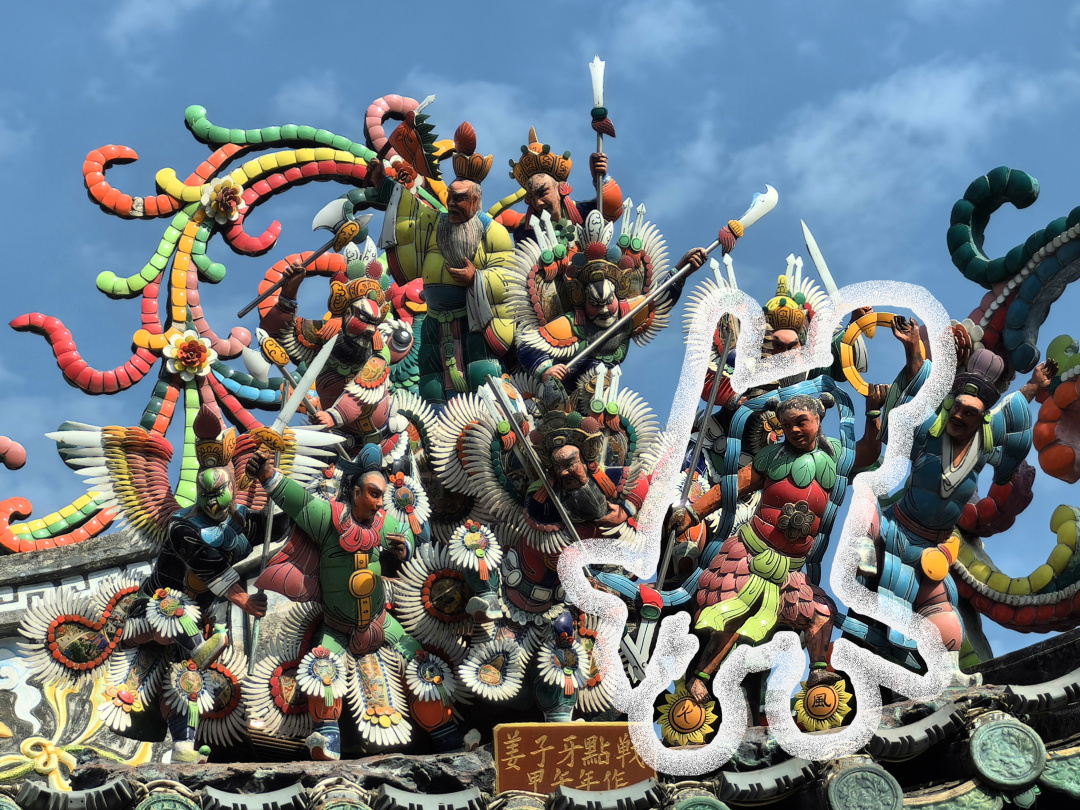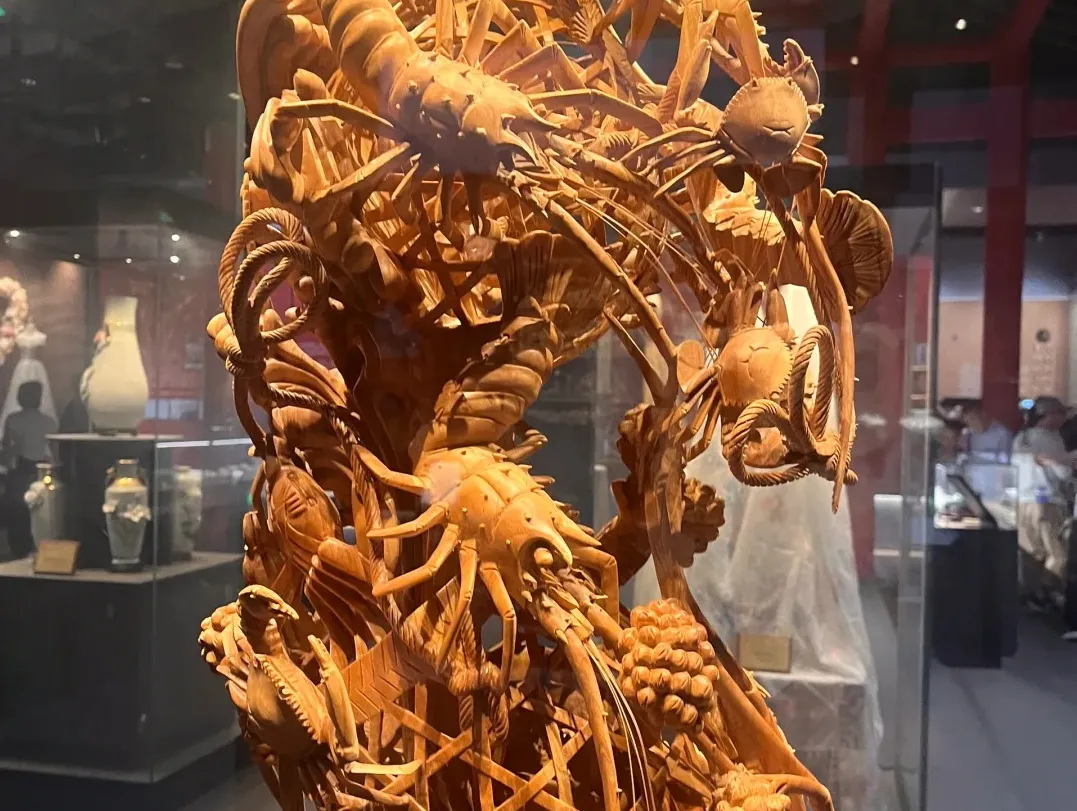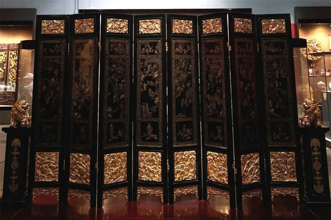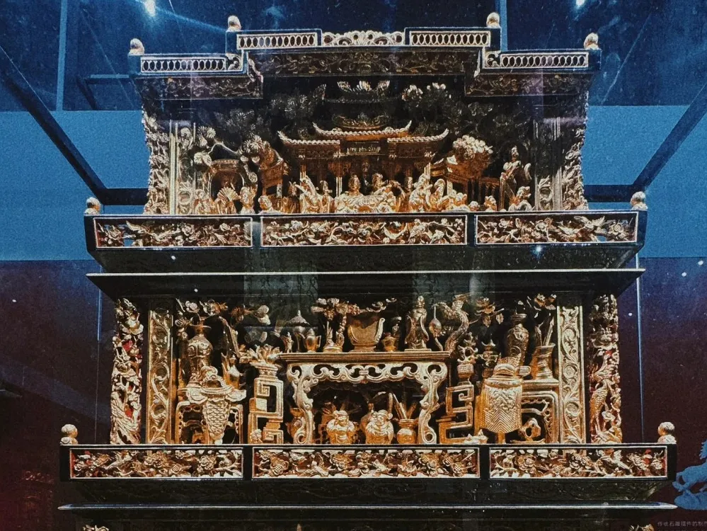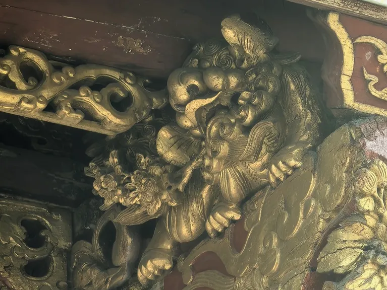 细看宫内横梁,展示着潮州木雕的传统工艺